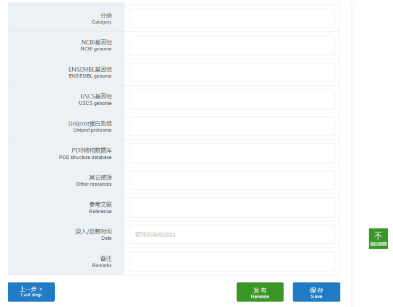 4.进入添加数据页面,如下图,添加完毕,可点击“发布”或者“保存”,点击发布后,不可修改,等待后台管理员审核(审核中)。点击保存,可在提交记录中再次修改编辑。