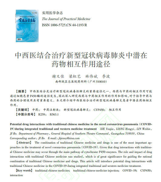 摘要: 中西医结合是治疗新型冠状病毒性肺炎的重要途径之一。西药与中药的相互作用可能通过细胞色素P450酶的途径发生,因此深入研究西药与中药相互作用的作用和影响,对于指导中药与西药的合理使用具有重要意义。本文将介绍中西医结合治疗新型冠状病毒肺炎患者中潜在药物相互作用。